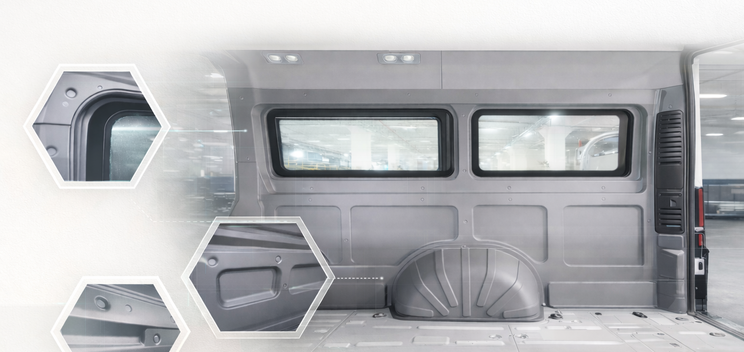 These innovative solutions efficiently replace traditional plywood constructions with rapid, modular alternatives. We place great emphasis on utilising recycled and recyclable materials, including aluminium and plastics, ensuring each product we develop is both durable and sustainable. Our mission is clear: to supply the automotive industry with intelligent, efficient components that benefit vehicles, individuals, and the environment alike.